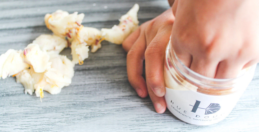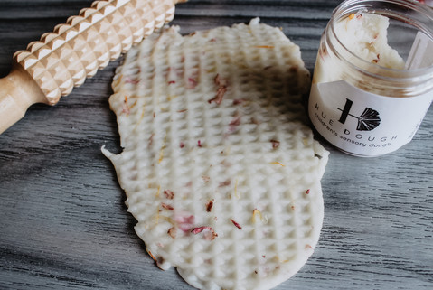 HUE dough is a natural sensory dough that's soft and contains essential oils and hued with plant based dyes.